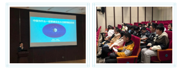 胡潭高老师以《中国为什么一定要建设北斗卫星导航系统》为讲座主题,通过介绍中国建设北斗导航系统的原因、历史背景、建设历程,北斗系统目前的功能绝活以及未来前景展望,生动形象地为在场师生讲解了“中国北斗·国之重器”的地位和意义。每每讲到近年来中国所取得的惊人成绩和进步,胡老师激情澎湃,难掩身为一名中国人且有幸从事相关事业的自豪感,并希冀在场的同学们要秉持拳拳爱国之心,扎实学识,充分利用好所学的专业,在新时代不断突破创新,为国家和民族的伟大复兴努力奋斗。