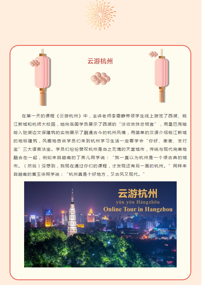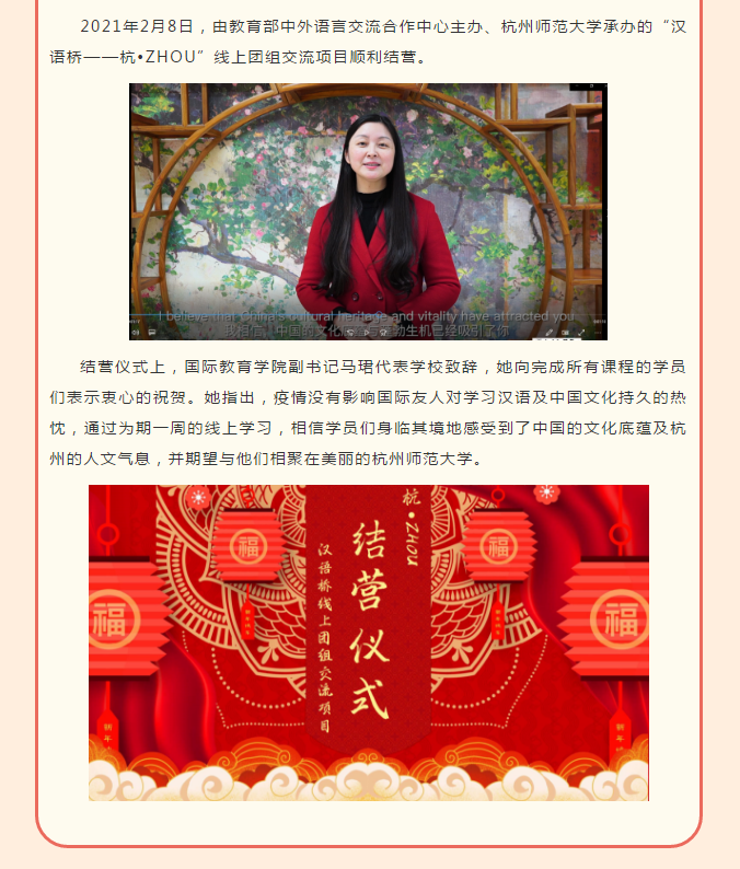 最IN杭·ZHOU 最忆杭州 ——杭州师范大学“汉语桥--杭·ZHOU”线上团组交流项目顺利结营
