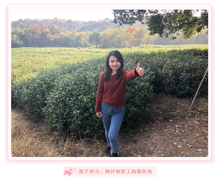 她满怀感恩之心,常说自己做得还不够,应该付出得更多;她满怀爱校之情,把小事做好,把简单的事做到极致,勤勤恳恳做好本职工作,乐意做好一颗螺丝钉。