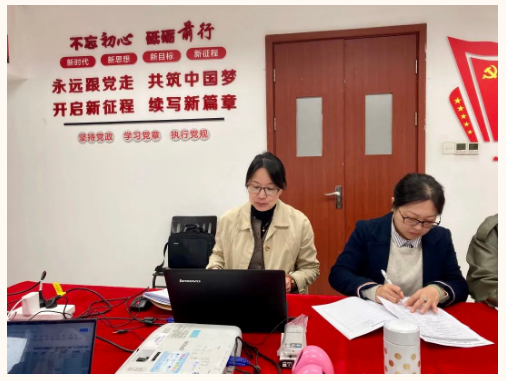 首先,支部书记赵丹老师带领全体党员一起围绕“学习二十大 领航向未来”的主题学习了二十大精神,一起回顾了中国共产党过去五年取得的历史性成就和新时代十年的伟大变革,深刻感受到了中国共产党和中国人民团结奋斗赢得的历史性胜利和对世界的深远影响。让大家充分认识到了学习贯彻党的二十大精神,全面准确,深入理解其内涵,精准把握其外延的重大意义。赵丹书记强调,全体党员在会后要继续原原本本、逐字逐句学习党的二十大报告和党章,学习习近平总书记在党的二十届一中全会上的重要讲话精神。接着,赵丹书记又带领大家逐条学习了二十大党章的30处重大修改,使大家对新修订的党章有了更深入的认识和理解。